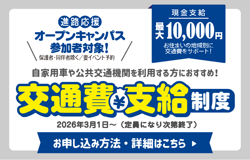 また、「#青春Express」を利用せずに来校された方で、本校Instagramをフォローしていただいている方に期間中お一人様1回に限り交通費の片道相当額(本校規定による)を現金支給!